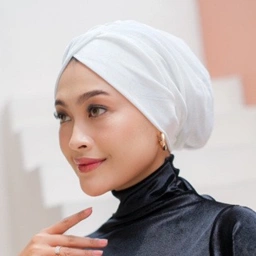 Turban 100% instant terbaru dari winonamodest dengan aksen silang di bagian dahi yang membuat look wajah menjadi lebih panjang.